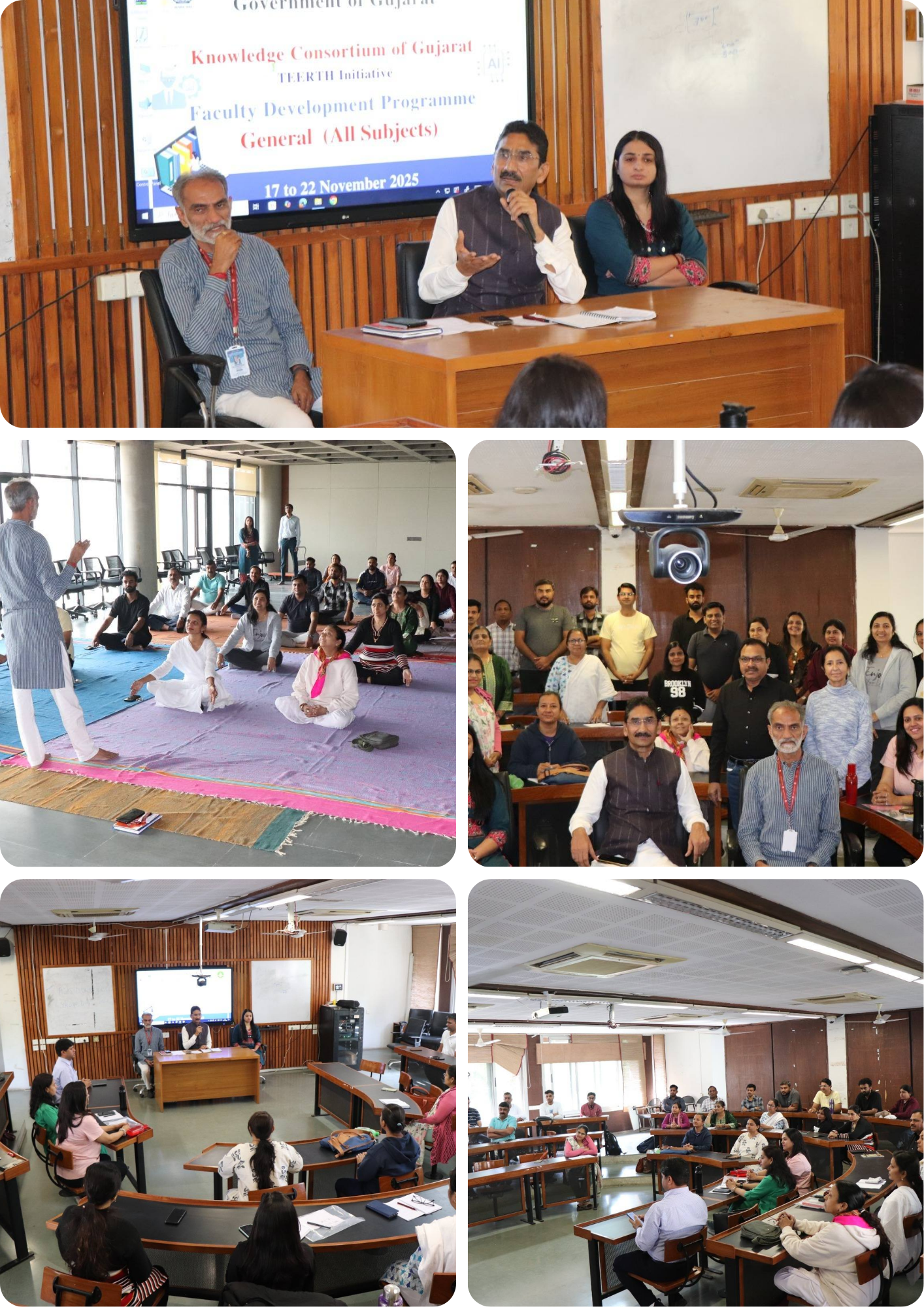 इस विशेष अवसर पर, सरकारी और अर्ध-सरकारी कॉलेजों के विभिन्न क्षेत्रों और विषयों के विशेषज्ञ प्रोफेसरों ने अपनी उपस्थिति दर्ज कराई। इन विद्वानों के साथ, हमने TEERTH के मूल तत्वों - ज्ञान, स्वास्थ्य और उत्कृष्टता के साथे व्यक्ति निर्माण, योग, आध्यात्म और योगाहार से, विकसित गुजरत एवं विकसित भारत के विषय पर चर्चा की।